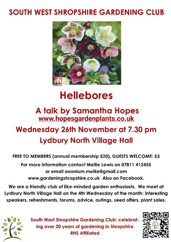 We will be joined by Samantha Hopes who has been to talk to us before. This time she will be talking to us about Hellebores which, as we all know, are so important for the pollinators out early in the year. Samantha has a wealth of experience working at various gardens.