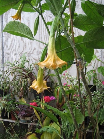 Anne Shepherdson, one of the Founding Members of the Gardening Club, bought this Trumpet Brugmansia just before start of Covid from a jumble sale, very cheaply. Since then, it sulked but Anne’s message is never give up because this year (maybe due to the warm weather) it has excelled as you can see. Anne’s message is never give up hope.