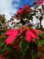 The small house plant that appears in our shops during the festive period is not really a true representation of the plant as really it is a small tree or large shrub with a growing height of up to 4 metres, like on the island of El Hierro, (see the photograph taken by Mellie in November 2024). The tree is easily 3 metres high. The flowers are rather inconspicuous small yellow structures that are found in the centre of the red bracts.