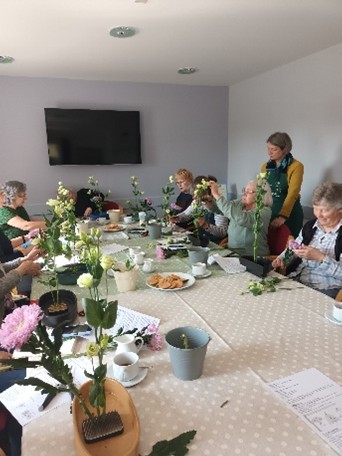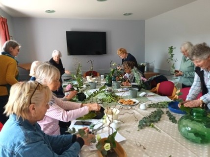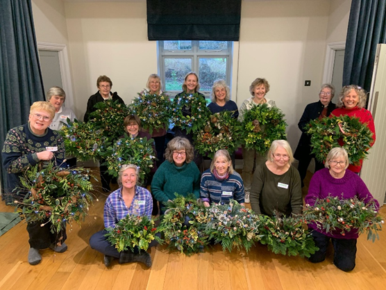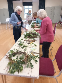 A traditional, seasonal activity with a difference! A group of 15 gardening club members and friends enjoyed a festive afternoon making Christmas wreaths and table decorations at Lydbury North Village Hall under the expert guidance of retired florist, Claire Labrum, and artist, Alison Schofield. Music and delicious refreshments, added to the amazing abundance of foliage, seedheads and ornaments provided, made this an event to be repeated! The choice of foliage and decorations including lights was amazing. The support of committee members made sure the afternoon ran smoothly and was enjoyed by all.