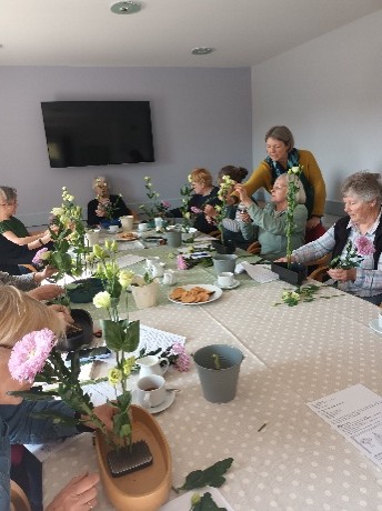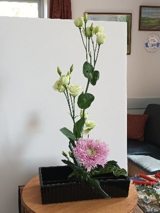 Though its roots are in medieval Japan, the floral arranging art of Ikebana has recently become more popular in western cultures. Displays are characterised by seasonal materials and sculptural, asymmetrically balanced flowers and/or foliage. The first workshop arranged by the gardening club was held in the committee room at Lydbury Village Hall on April 2nd. Ten members and friends of SWSGC had a very enjoyable morning learning the principles of Ikebana Flower Arranging under the expert guidance of Noella Plasman-Jones, a senior teacher of the Ohara School of Ikebana.