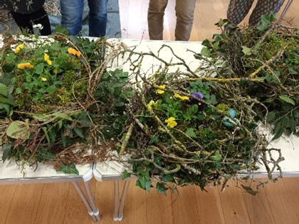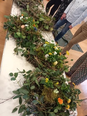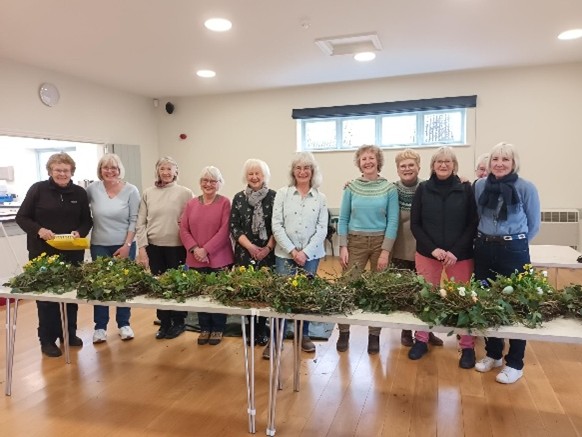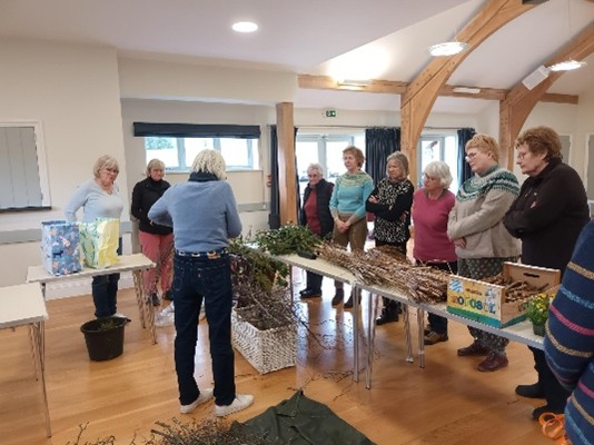 Fitting with our gardening club theme for 2026 of sustainable gardening, 10 gardening club members and friends enjoyed a very relaxed, sociable afternoon with Georgina Painter-Black creating rustic Easter Planters. Georgina, from Georgina’s Flowers, designs fresh and dried floral arrangements using material from her country garden near Tenbury Wells. Using natural materials including birch twigs, moss and spring flowers, mainly gathered from Georgina’s garden, we were instructed on how to create natural ‘nest’ planting arrangements that could be used indoor or out. Although not all participants had much experience of this type of craft, all were happy with what they had created with Georgina’s guidance. Some ornamental eggs were added to give the final touch to these